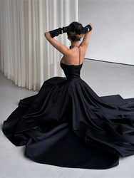 Tags:black strapless prom dress, side split evening gown, A-line formal dress, lace-up back prom dress, floor-length satin gown, vintage style evening dress, customized prom gown, plus size formal dress, strapless evening dress with train, black tie event dress, sleeveless prom dress, classic evening gown, affordable prom dresses online, high slit prom dress.