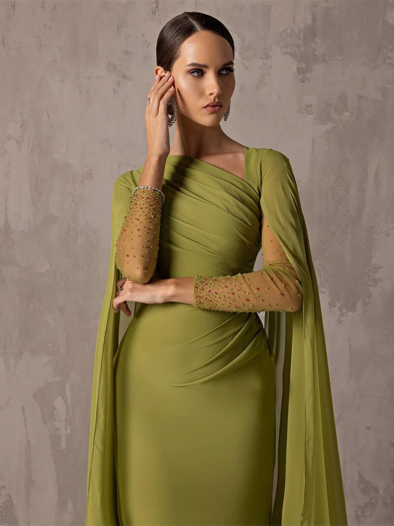 Green Shawl Evening Dress Sleeveless Trumpet Mermaid Floor-Length Formal Dresses