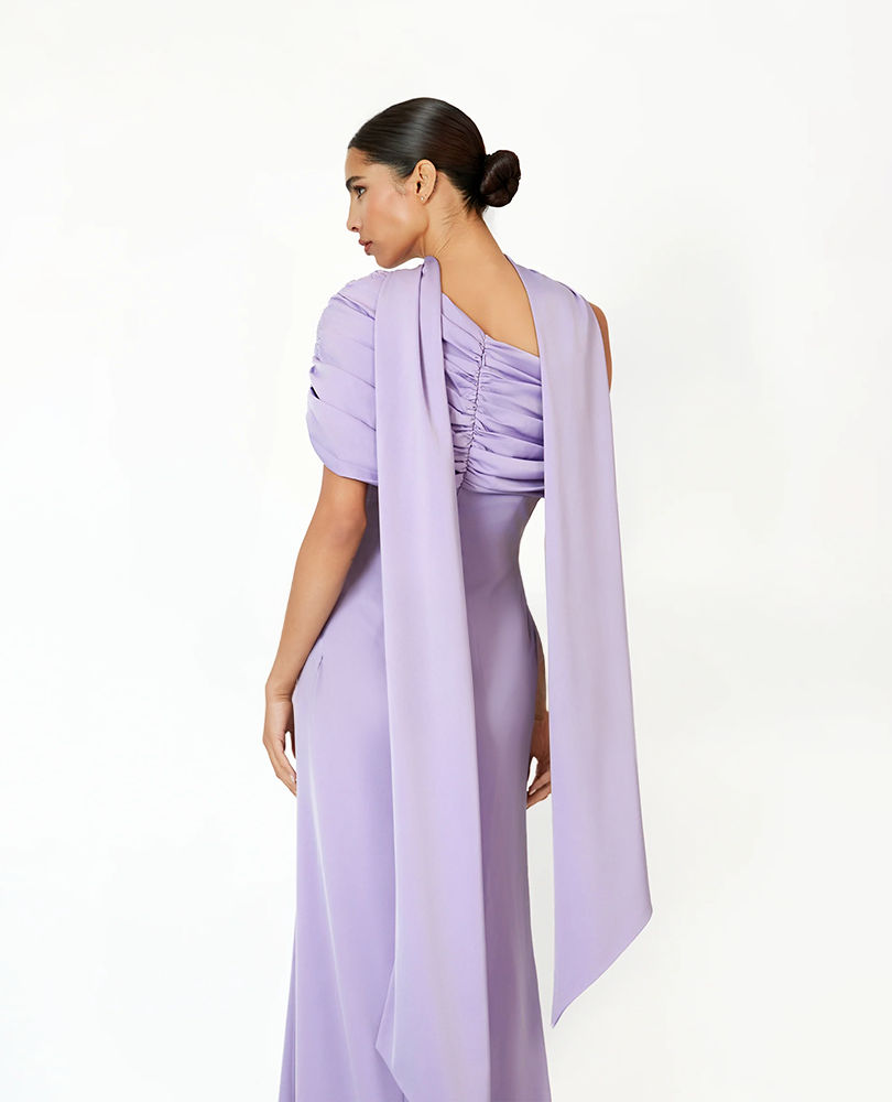 One-Shoulder Evening Dress Pleated Satin Long Formal Party Gown Column Silhouett