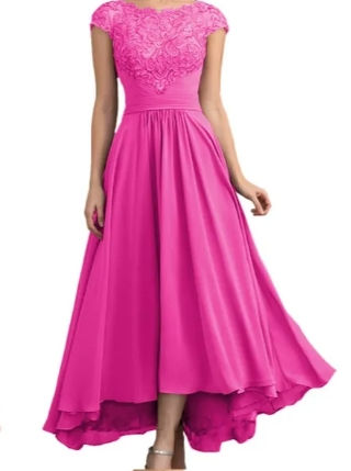 Tags: tea length evening dress, formal occasion dress, mother of the bride dress tea length, wedding guest dress tea length, chiffon evening dress, rayon formal dress, A-line evening dress, empire waist evening dress, short sleeve formal dress, O-neck evening dress, applique evening dress, built-in bra evening dress, plus size tea length dress, formal dress with short sleeves.