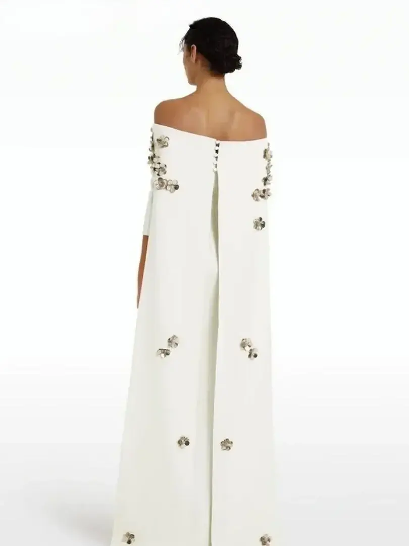 Tags:Off the shoulder evening dress, floor length formal gown, satin evening dress with appliques, half sleeve evening dress, modern style evening gown, formal bridal party dress, elegant off shoulder dress, long sleeve satin formal dress, affordable evening dress online, custom made evening dress, evening dress with built in bra, polyester satin evening gown, straight silhouette evening dress, formal dress for all ages.