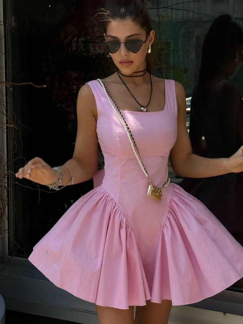 Tags:short satin homecoming dress, pink party dress, mini prom gown, sleeveless formal dress, spaghetti strap cocktail dress, A-line homecoming dress, ruched homecoming dress, tiered short dress, pleated party dress, built-in bra homecoming dress, above knee homecoming dress, satin formal gown, cute homecoming dresses, affordable homecoming dresses.