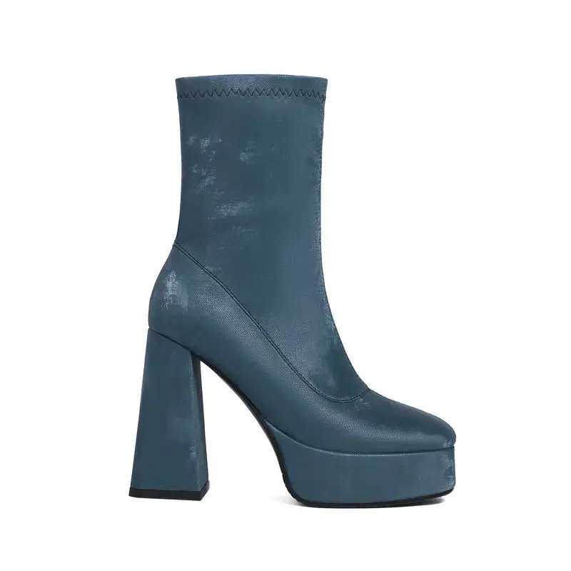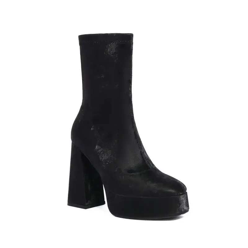 These stylish ankle boots are designed to make a statement, featuring a trendy platform sole and a flattering stretch fabric that hugs your legs beautifully.