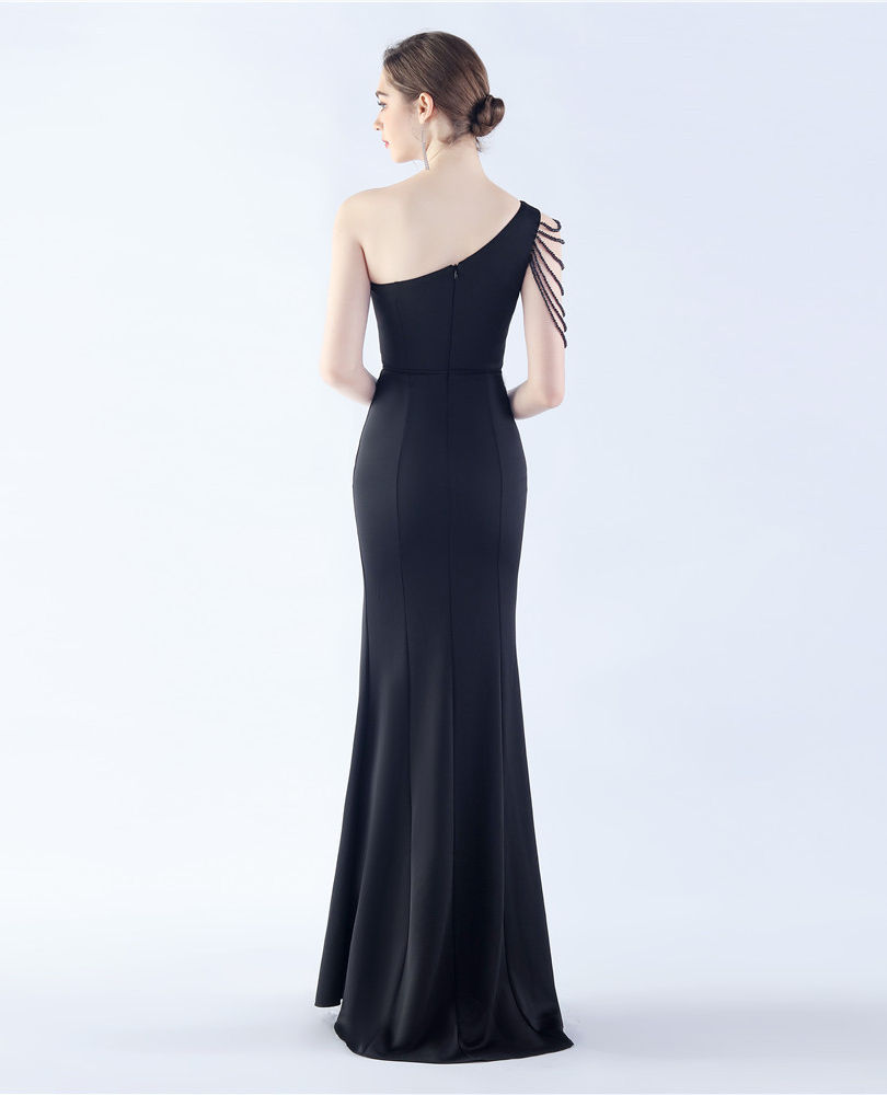 Tags: one shoulder satin evening gown, mermaid prom dress floor length, elegant formal dress with beading, trumpet silhouette evening gown, sexy one shoulder formal dress, soft satin gala dress for women, sleeveless wedding guest dress, floor length cocktail party dress, formal gown with built in bra, simple elegant prom dress, open back zipper formal gown, candy color satin evening dress, classic hollywood style formal dress, what to wear to a formal evening event