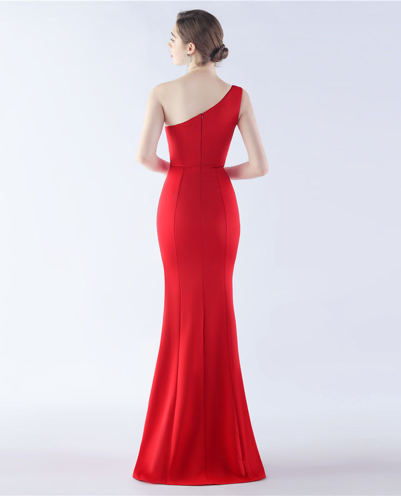 Tags: one shoulder satin mermaid dress, sexy formal gown with leg slit, floor length one shoulder evening dress, bright color prom dress trumpet style, simple elegant one shoulder formal dress, open back mermaid gown with sweep train, satin evening dress with side slit, asymmetrical neckline formal gown, solid color mermaid evening gown, sexy wedding guest dress long formal, prom dress one shoulder open back, formal gown with built in bra support, trumpet silhouette evening dress satin