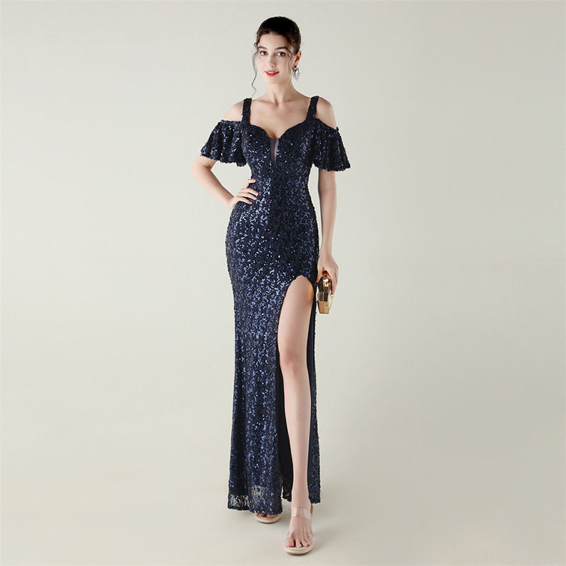 Tags: off the shoulder sequin evening gown, mermaid silhouette formal dress, v-neck backless prom dress, ruched sequin trumpet gown, floor length formal dress with sequins, sexy mermaid evening dress for wedding, elegant sequin cocktail party dress, sparkly off shoulder formal gown, black tie event mermaid dress, zipper back sequin evening dress, long sequin dress with v neck, formal evening gown with built in bra, women's floor length sequin gown, ruched bodycon sequin dress long
