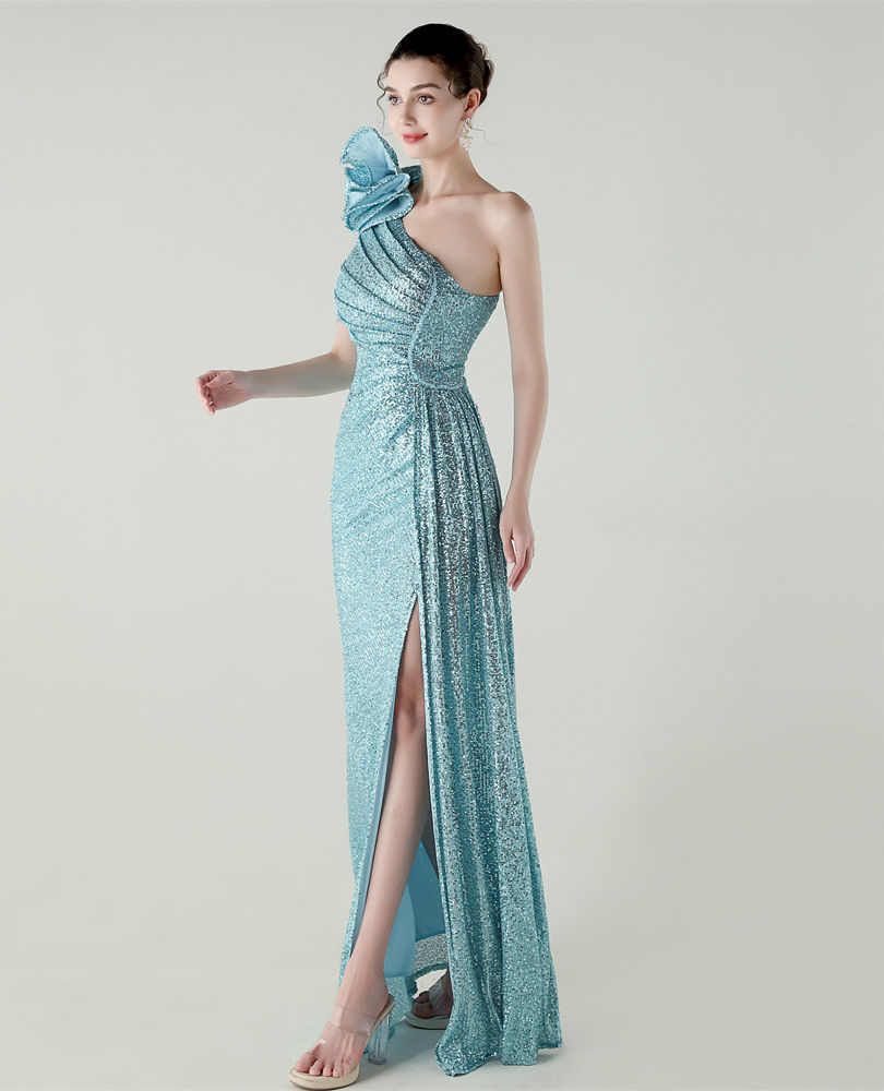 Tags: one shoulder sequin evening gown, mermaid prom dress with high slit, beaded formal dress floor length, elegant one shoulder formal gown, sexy high slit evening dress, sequin mermaid dress for wedding guest, black tie event one shoulder dress, floor length beaded prom gown, trumpet silhouette sequin dress, formal gown with beading and slit, one shoulder open back evening dress, elegant prom dress with sequins, long mermaid formal dress with slit