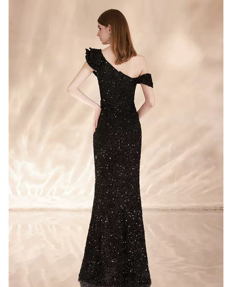 One Shoulder Sequin Evening Gown, Mermaid Prom Dress, Ruched Formal Party Gown