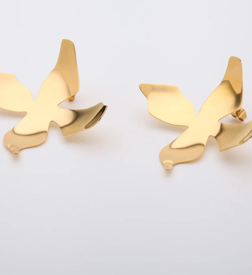 Rose Gold Plated Flower Stud Earrings Stainless Steel Polished Floral Charm