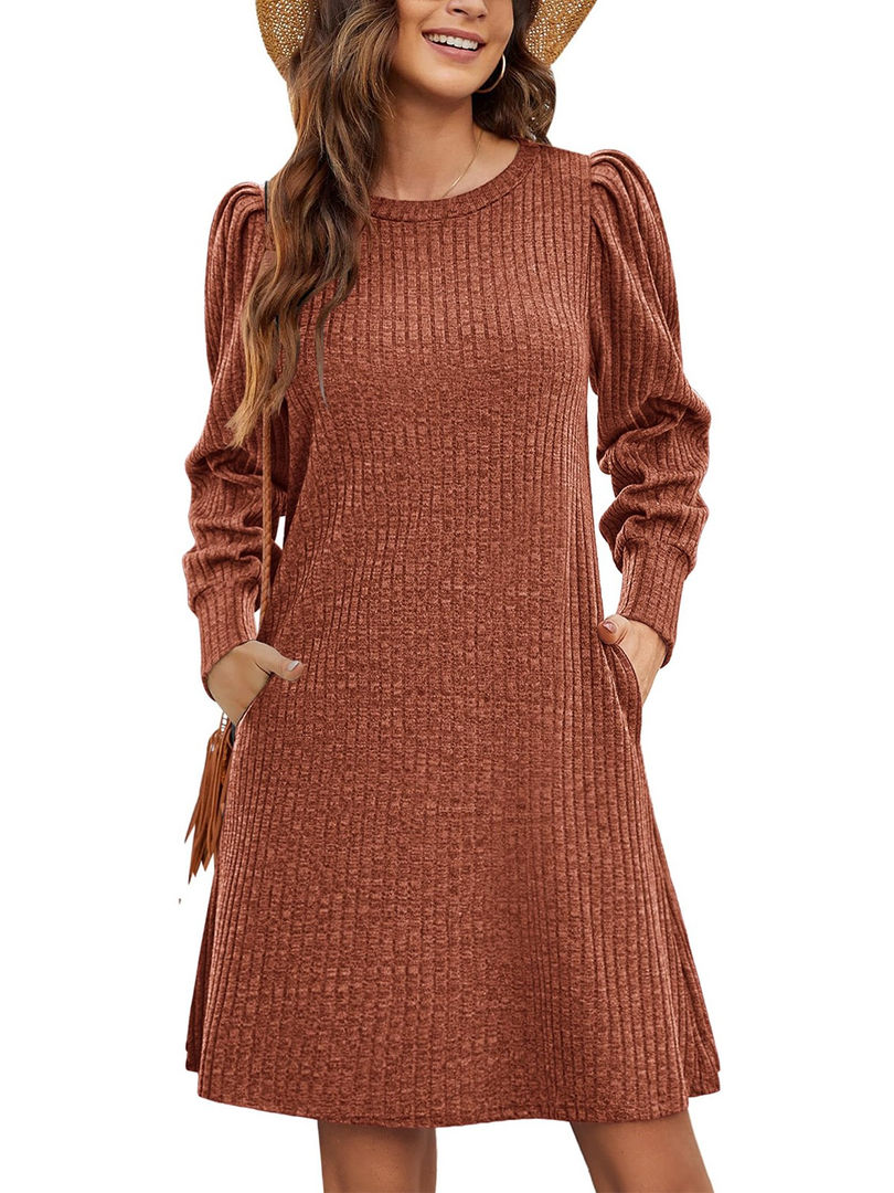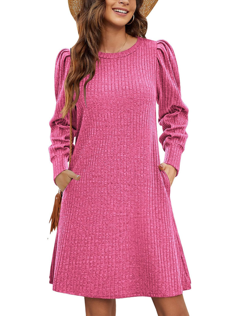 Casual Knee-Length Sleeveless O-Neck A-LINE Solid Dress High Strecth Polyester R