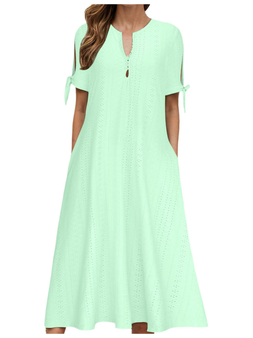 This sleeveless dress offers a comfortable and practical option for your daily wear. It features a simple O-neck and a flattering A-line shape, designed to move with you throughout the day.