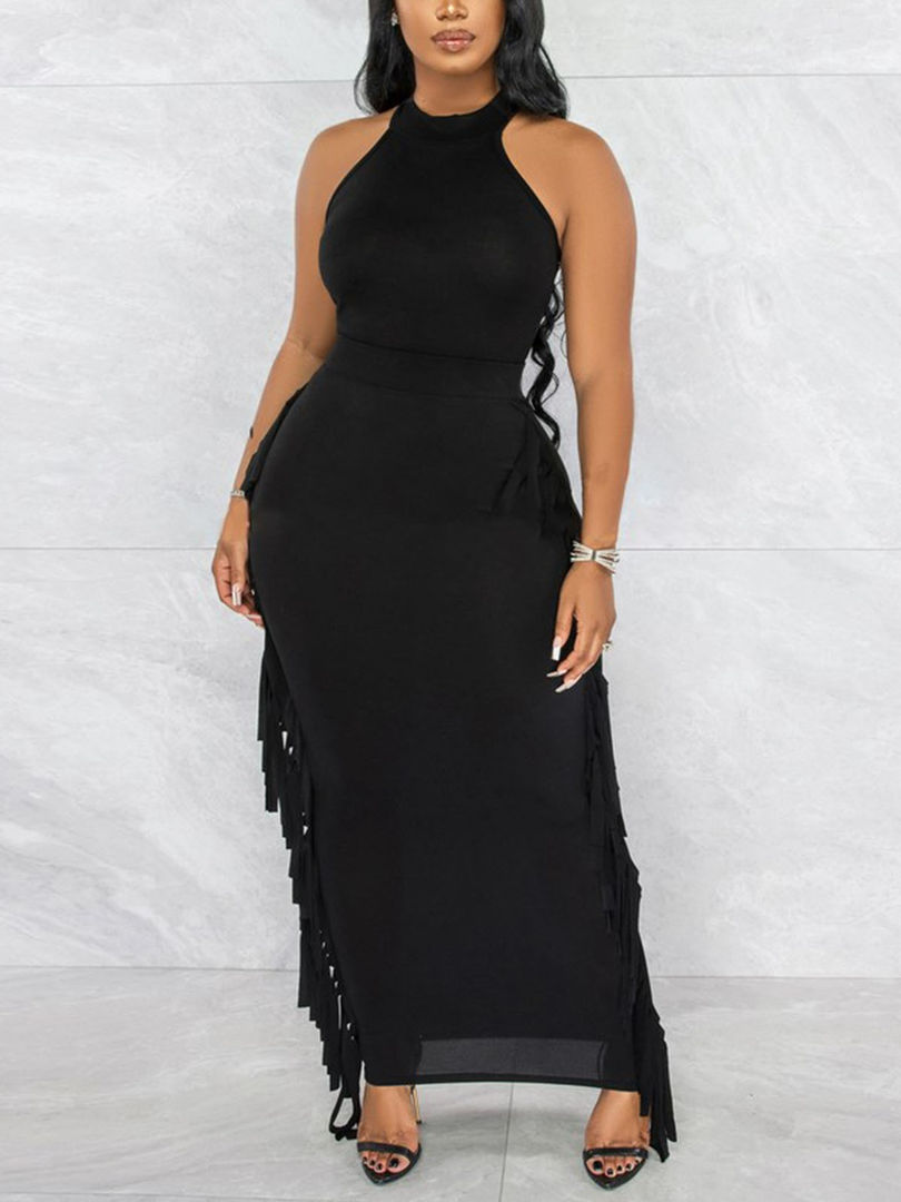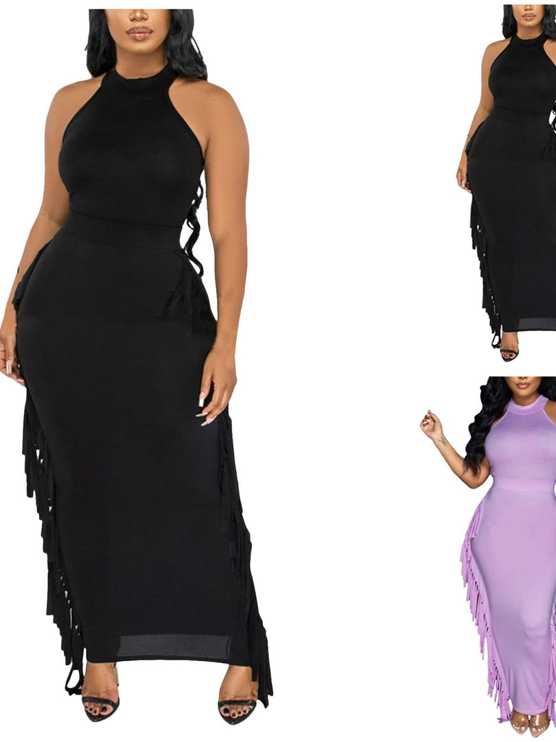 Sleeveless O-Neck Solid A-Line Knee Length Dress High Stretch Polyester