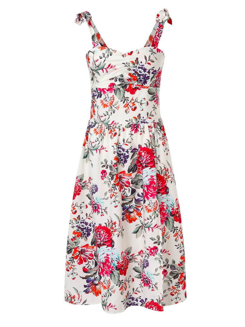 Sleeveless Strap Split A-Line Polyester High Stretch O-Neck Knee Dress