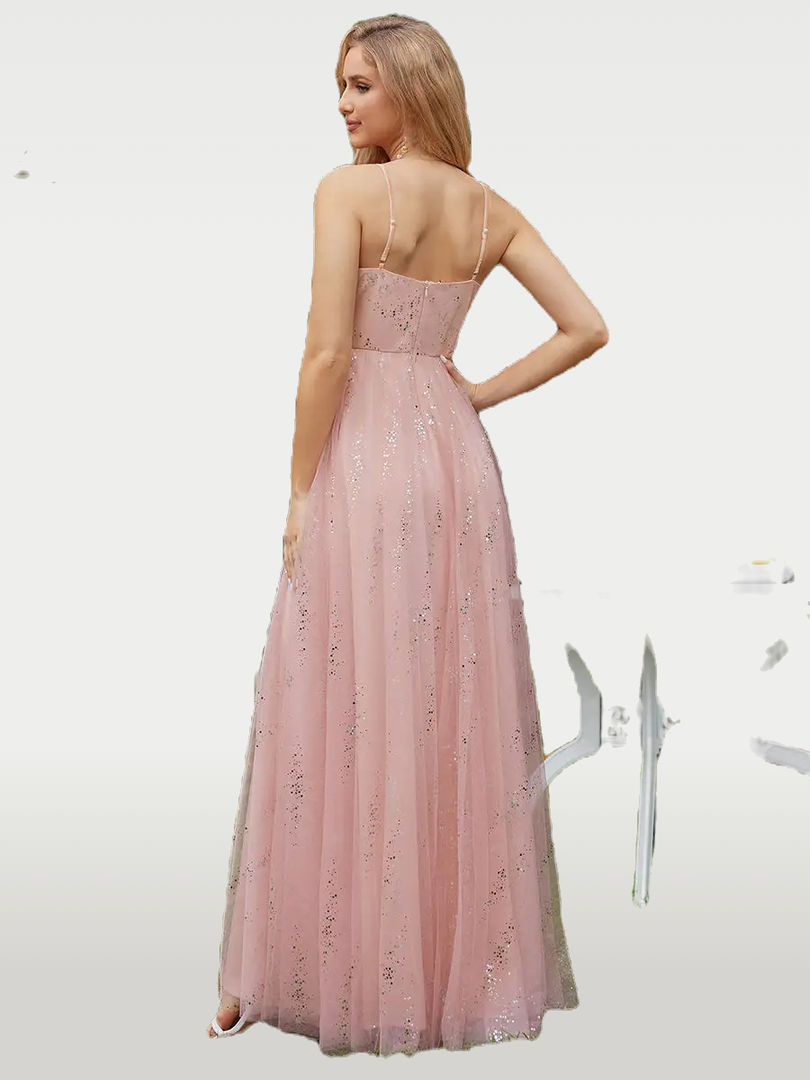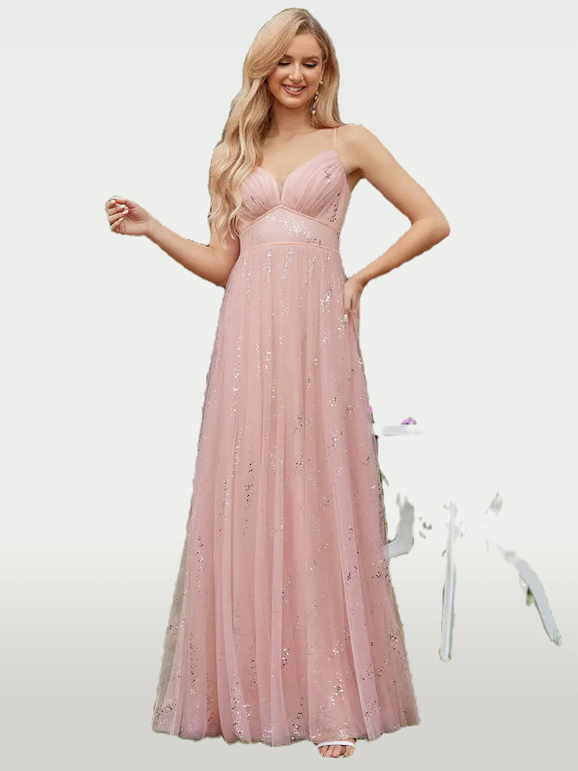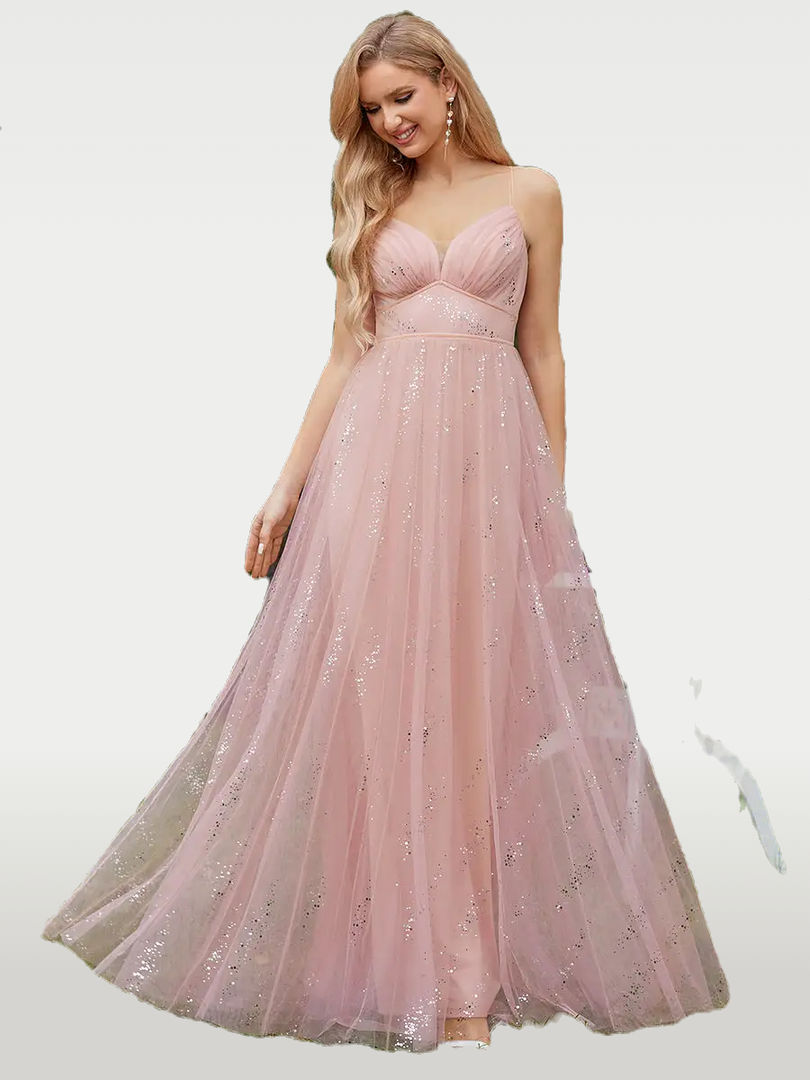 Elegant Evening DressesTulle v Neck Spaghetti Strap Bodice Sequin Small Size 202