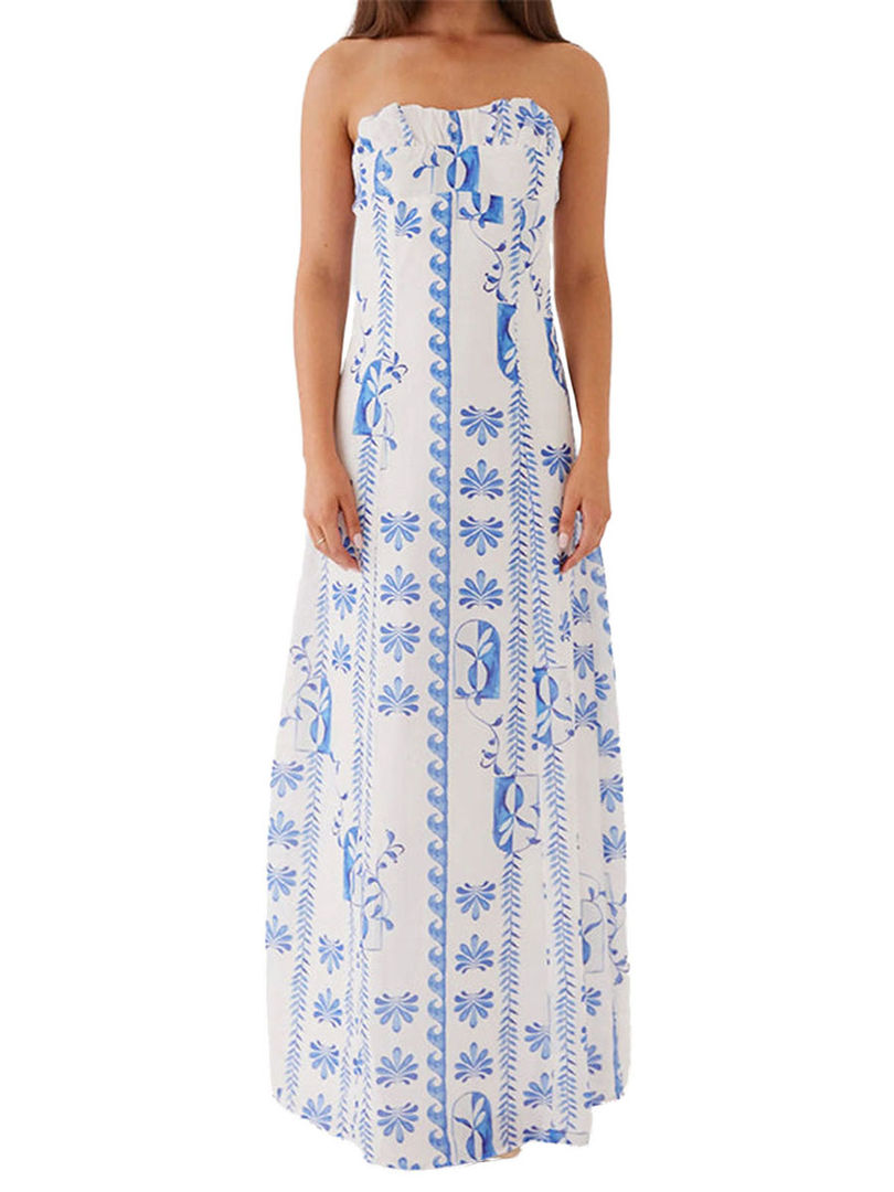 This is a mid-calf length dress crafted from velvet fabric. It features a strapless neckline and is designed with a regular fit. The dress includes diamond decoration and closes with a pullover style.