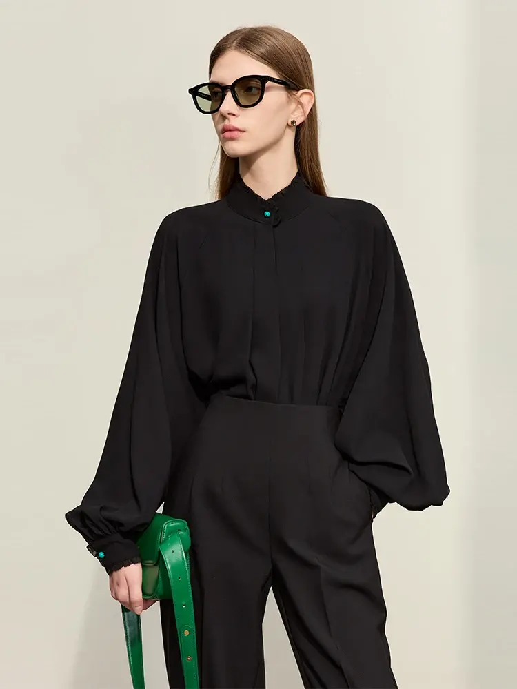 Elegant Lantern Sleeve Silk Blouse - Spring Fashion Minimalist Top