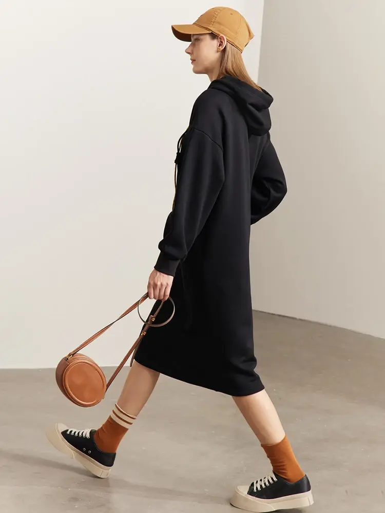 Elegant Letter Embroidery Casual Dress Autumn Winter Minimalist