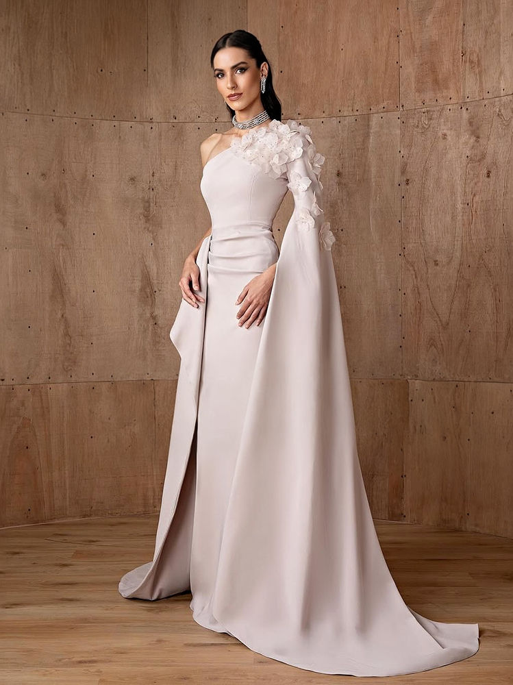 Tags:one shoulder floral evening dress, floor length prom dress, elegant women's evening gown, pleated formal dress, one shoulder long dress, floral print evening dress, formal one shoulder gown, long sleeve evening dress, floor length floral dress, women's formal evening wear, one shoulder prom gown, flower detail evening dress, classic style evening dress, polyester evening dress.