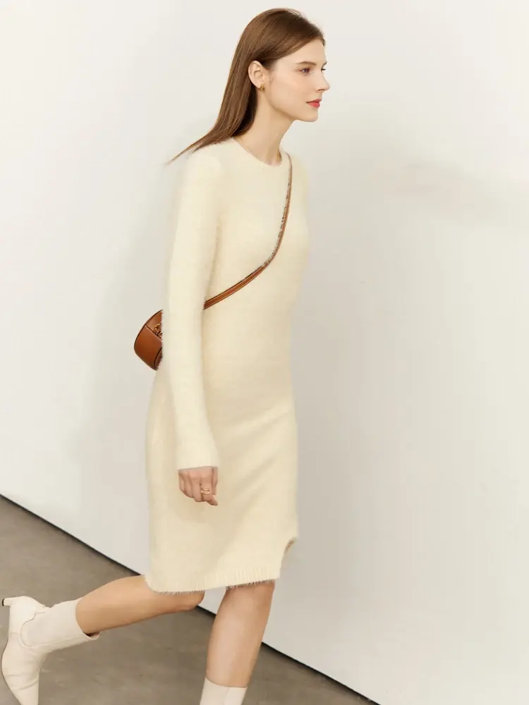 Embrace sophistication with this elegant dress, designed for the modern woman. The slim fit and knee-length silhouette flatter your figure, while the soft, knitted fabric provides comfort and warmth. Perfect for a variety of occasions, it effortlessly transitions from day to night.