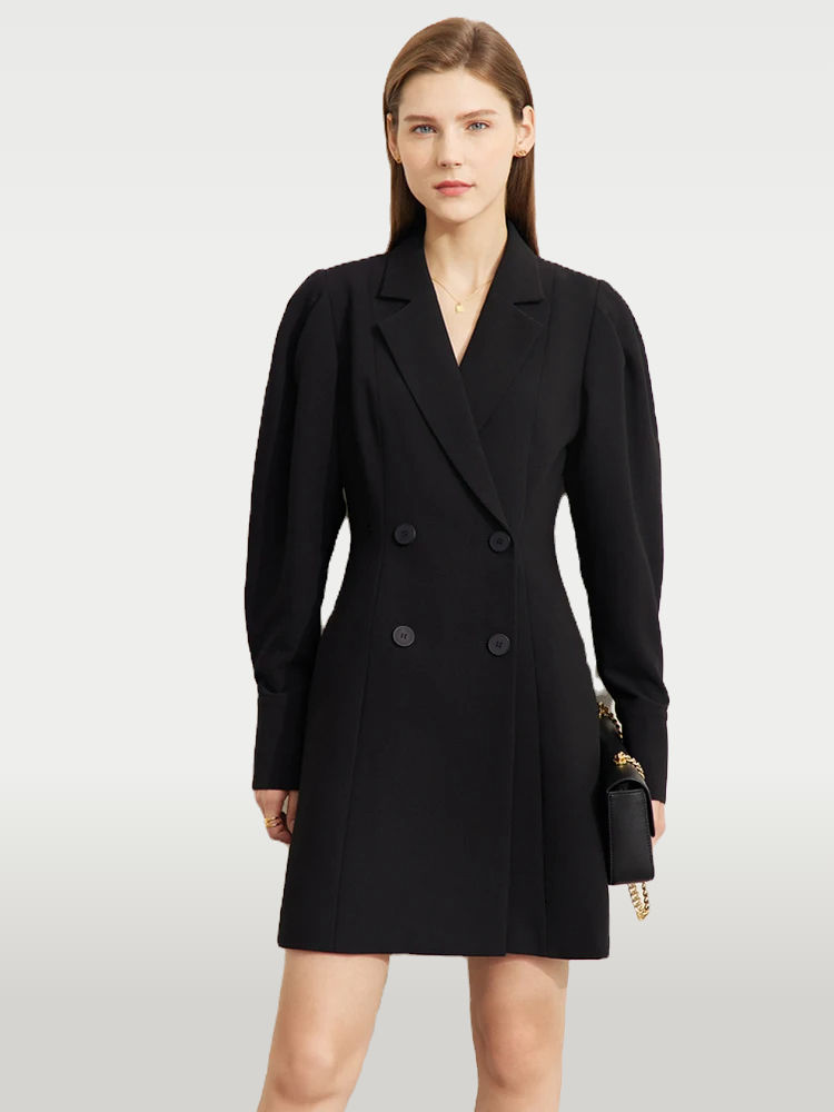 This knee-length dress is a timeless piece for the modern woman. Tailored for a slim fit and featuring a classic A-line silhouette, it offers both comfort and style. The notched neckline and double-breasted closure add a touch of sophistication, perfect for creating an elegant and polished look. Crafted from a blend of polyester, spandex, and viscose, this dress is comfortable, breathable, and durable. Ideal for office settings, social gatherings, or any occasion where you want to make a lasting impression.