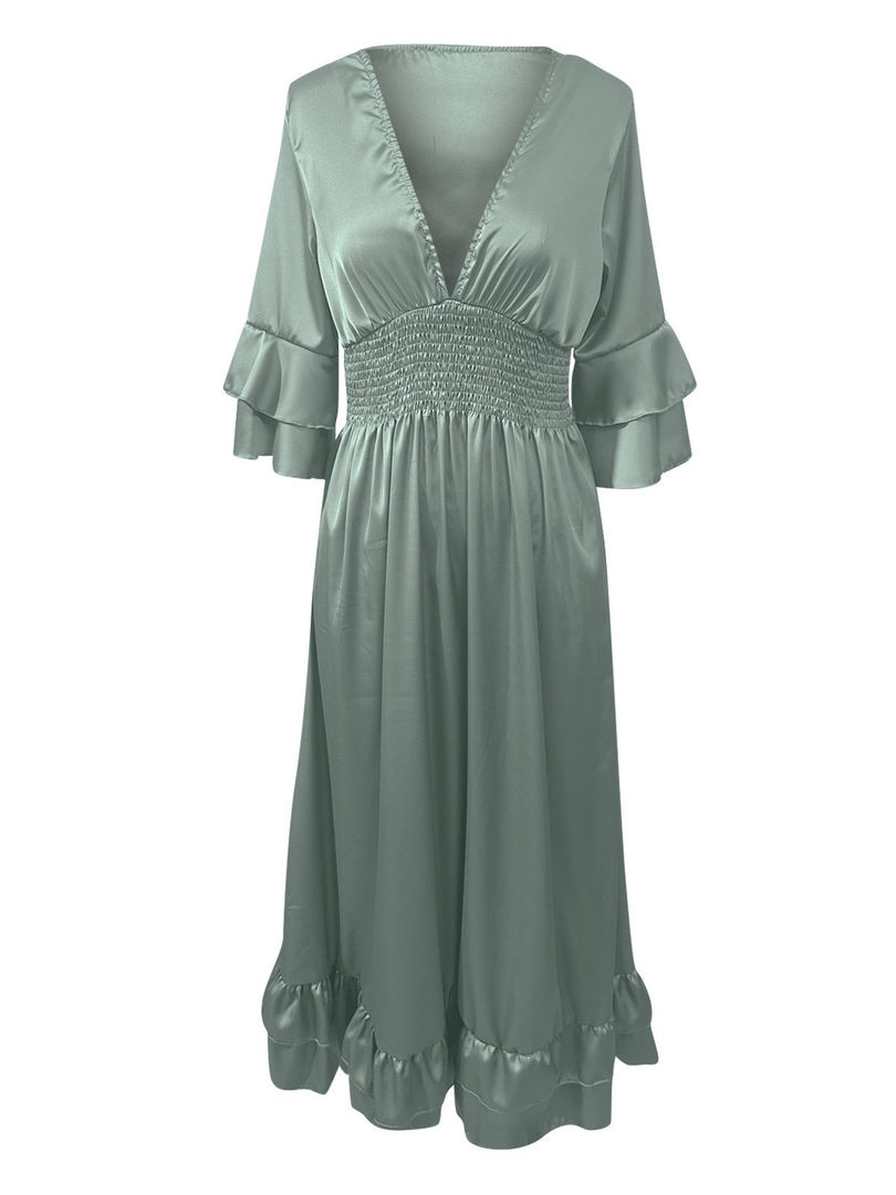 Materials: Pair it with: Occasion: Tags: ankle length formal dress, women's vintage style dress, v neck three quarter sleeve dress, high stretch ankle dress, a line silhouette dress, dress with applique details, elegant evening dress women, party wear ankle length dress, comfortable formal wear, solid color long dress, special occasion dress women, butterfly sleeve dress long, polyester formal dress.