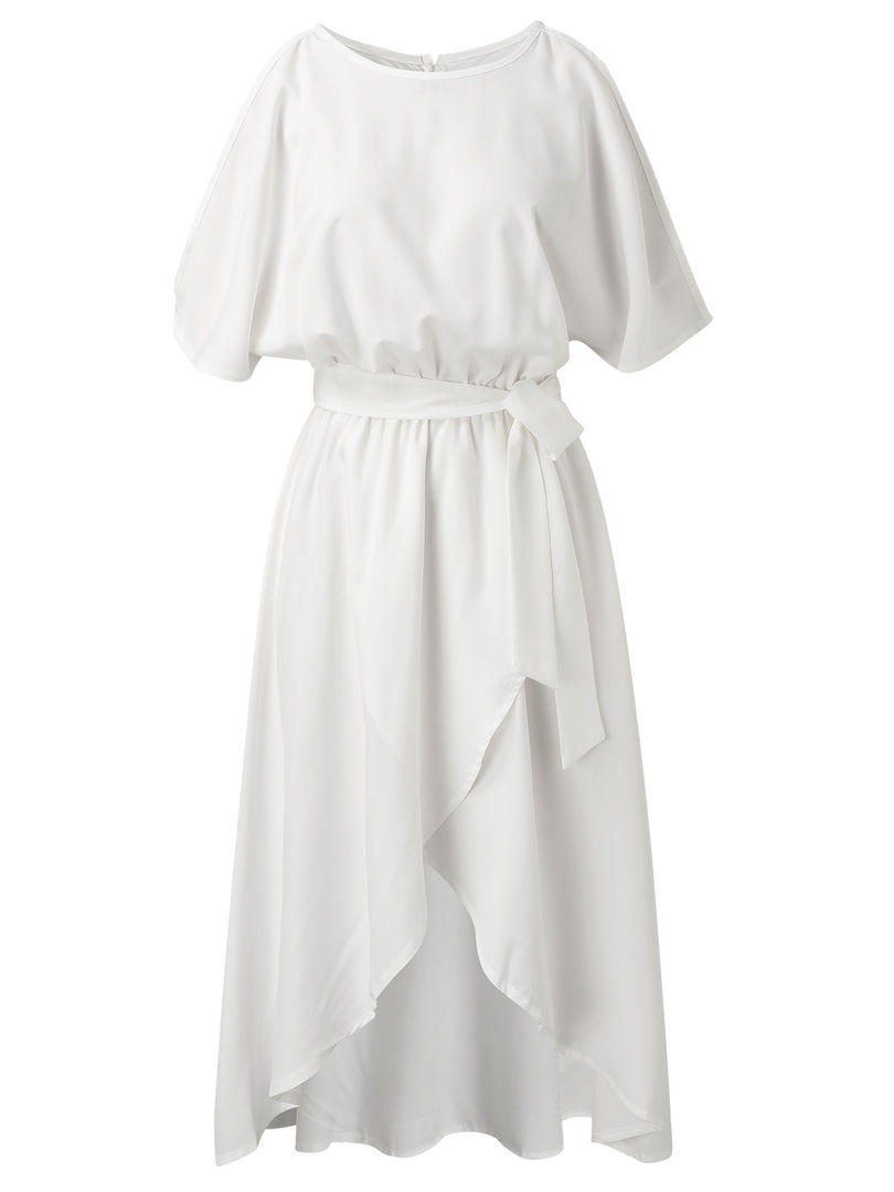 Sleeveless Split Ruffles Knit Knee-Length O-Neck A-LINE High Stretch Dress
