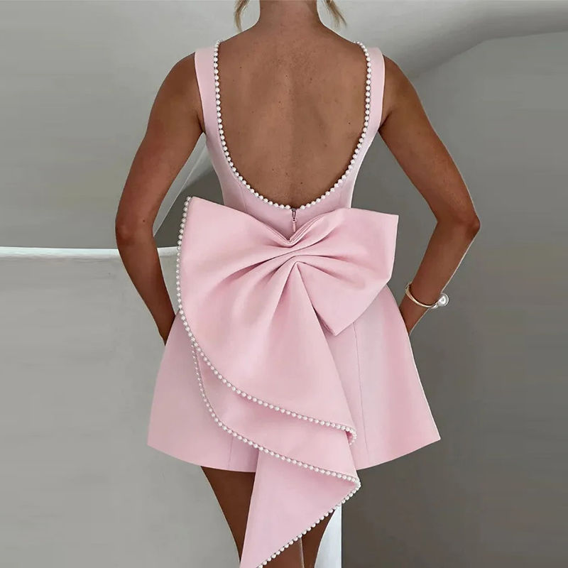 Tags:Elegant sleeveless prom dress, pearl back bow evening gown, sexy backless formal dress, A-line prom dress, O-neck evening dress, polyester prom dress, jersey formal gown, affordable prom dresses online, formal dresses for women, long evening gowns with bow, sleeveless formal dresses, backless prom dresses, A-line evening gowns, formal dresses with pearl embellishments.