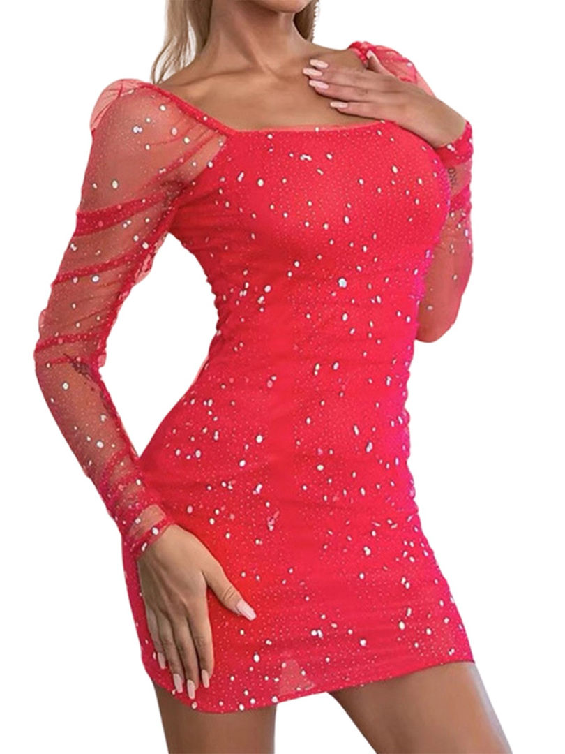 Elegant Strapless Sexy Mini Dress Women Fashion Off-Shoulder Backless Sequins Pa