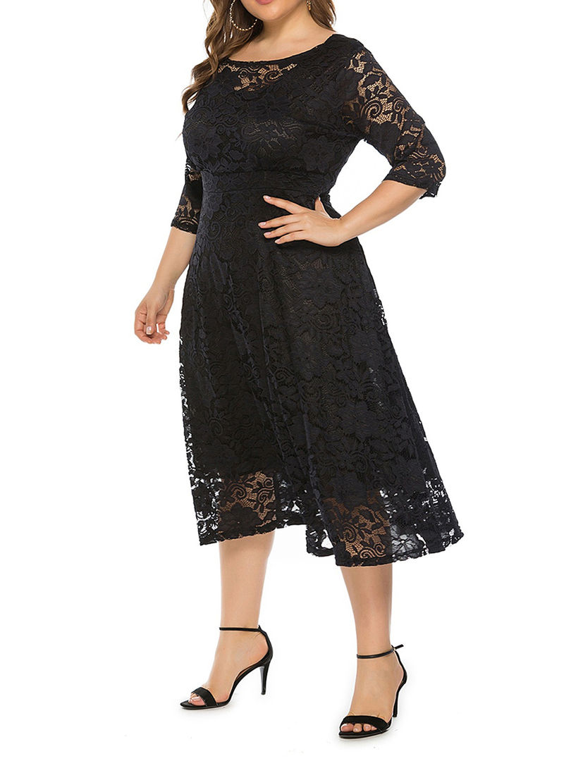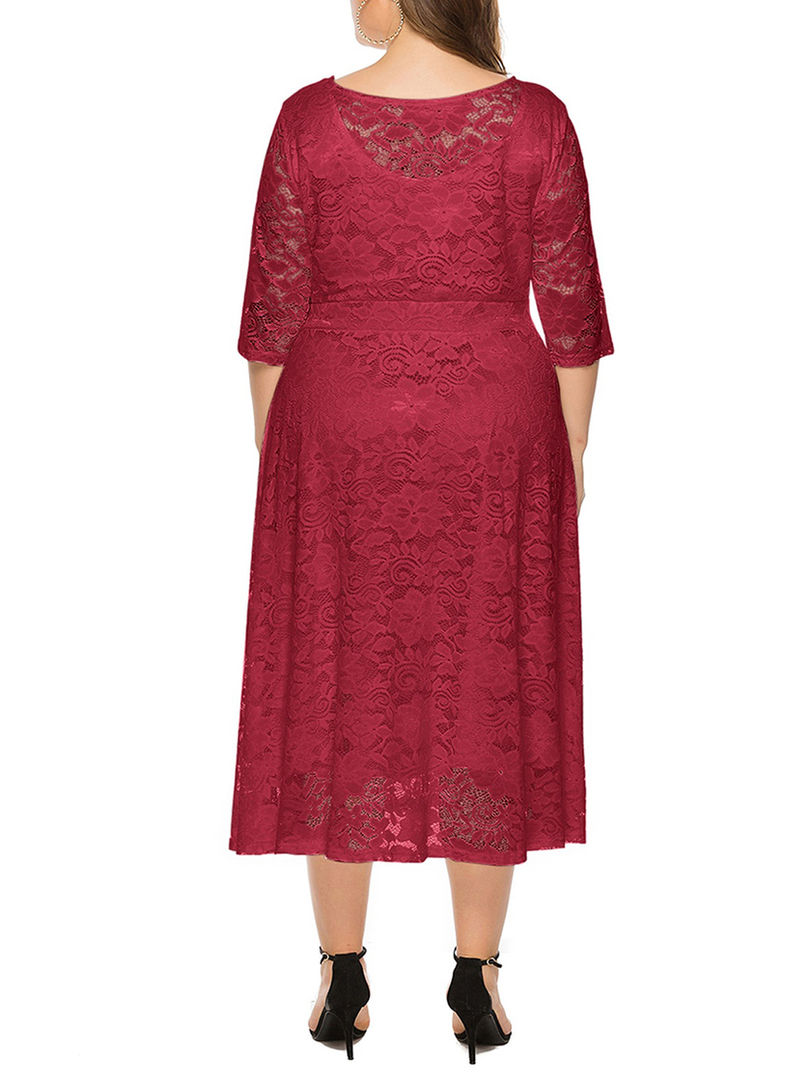 Velvet O-Neck Mid-Calf Dress with Full Sleeve Diamond Decoration Regular Fit