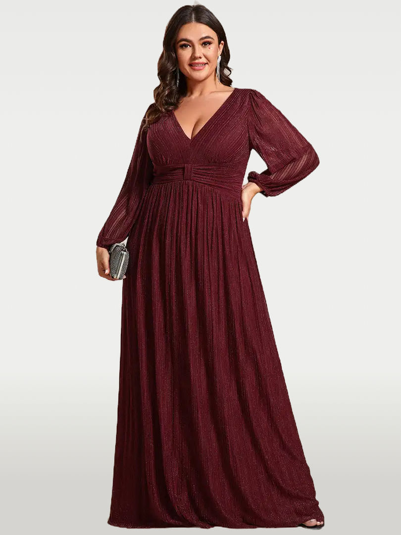 This elegant evening dress features a flattering V-neckline and a classic A-line silhouette that flatters all ages. Crafted from luxurious chiffon, it drapes beautifully and features a stylish empire waist. Delicate sashes add a touch of detail, making this dress perfect for any formal evening occasion.