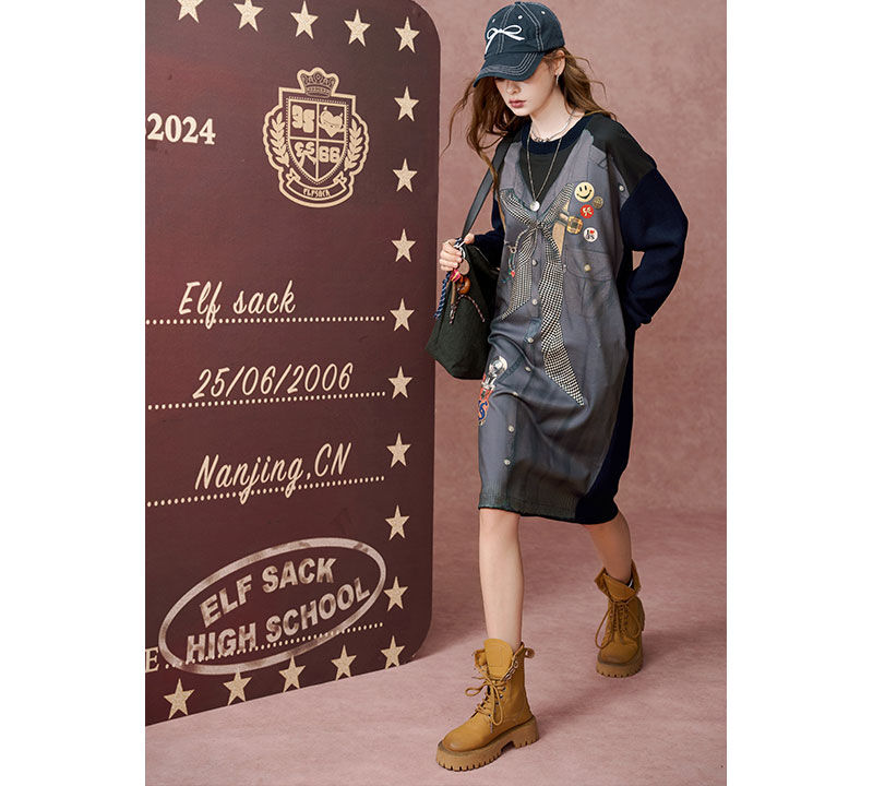 Tags: casual long sleeve hoodie dress for women, knee length pullover sweatshirt dress, loose fit cotton hoodie dress, straight cut sweater dress for autumn, women's round neck pullover dress, cartoon applique knit dress for fall, contrasting color block hoodie dress, comfortable casual dress for weekend wear, pullover hoodie dress with applique, how to style a sweatshirt dress for winter, women's casual knit dress long sleeve, O-neck straight silhouette dress, autumn casual dresses for women, easy to wear pullover dress for fall