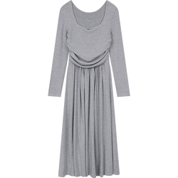 Tags:grey square neck long sleeve dress, pleated A-line midi dress for women, elegant grey knit dress for spring, preppy style long sleeve dress, mid-calf A-line pullover dress, women's grey dress for office wear, square neckline pleated dress casual, long sleeve grey midi dress for spring, comfortable knit A-line dress, solid grey dress with pleated skirt, what to wear to a spring brunch, elegant casual dress for women, regular fit square neck dress, grey pullover dress with long sleeves