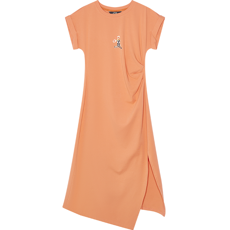 Printed A-Line Dress, Mid-Calf Casual Dress, O-Neck Cotton Blend, Cartoon