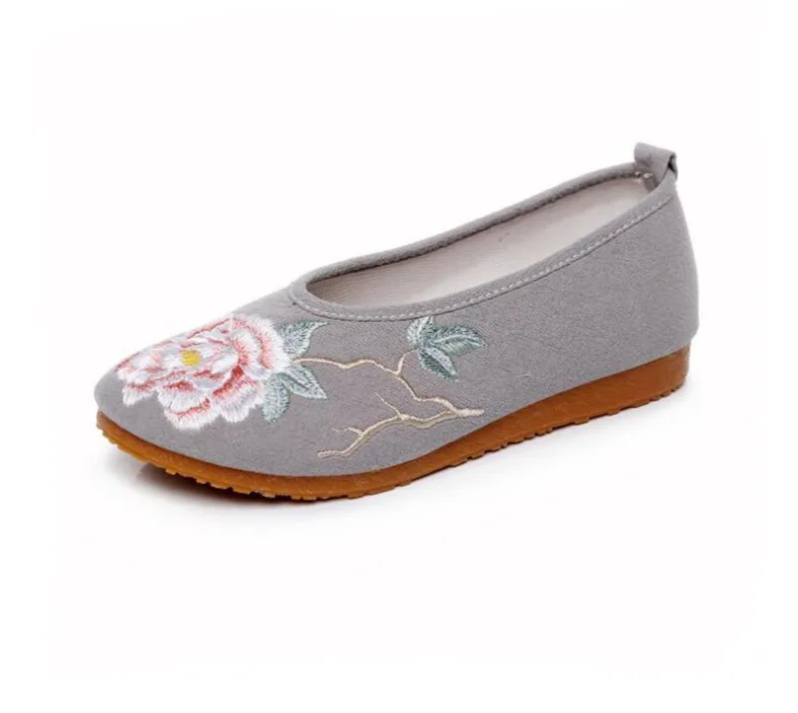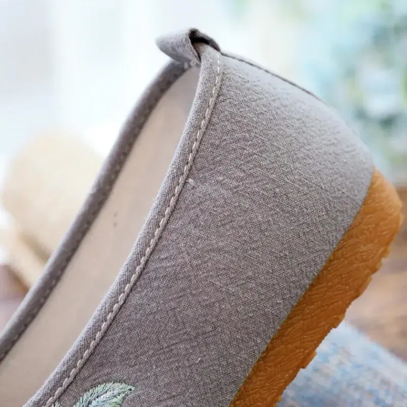Embroidered Cotton Slip-On Loafers | Retro Flats