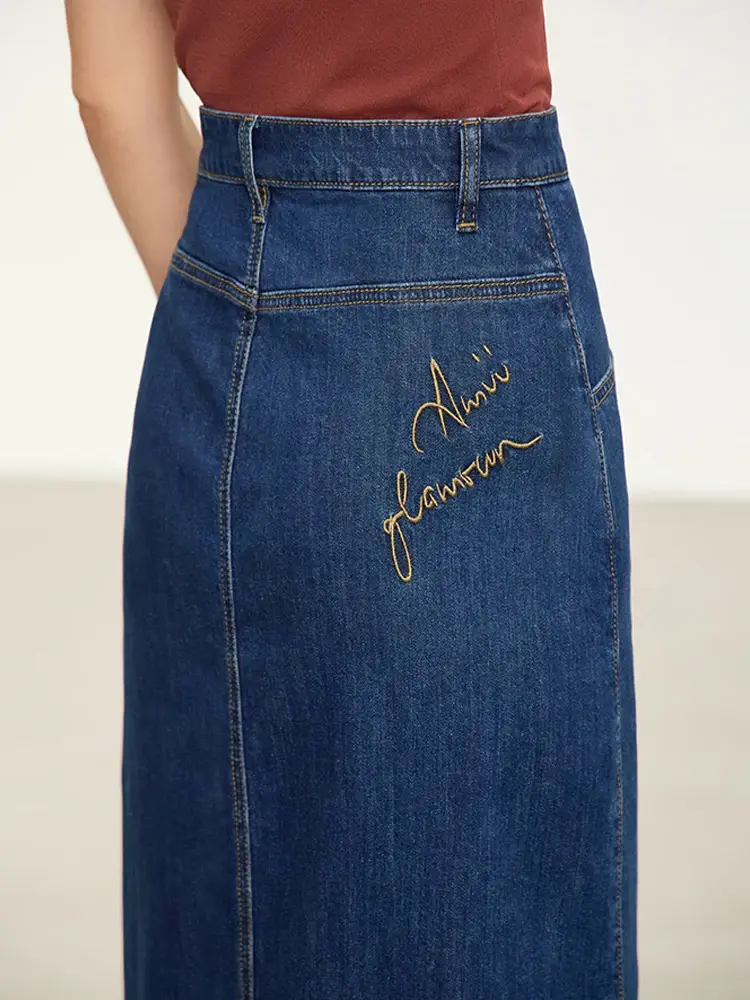 Embroidered Denim Split Skirt - Fall Fashion Casual Chic