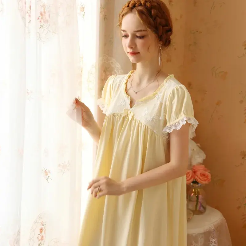 Embroidered Lace Cotton Nightgown with Vintage Style Sleepwear