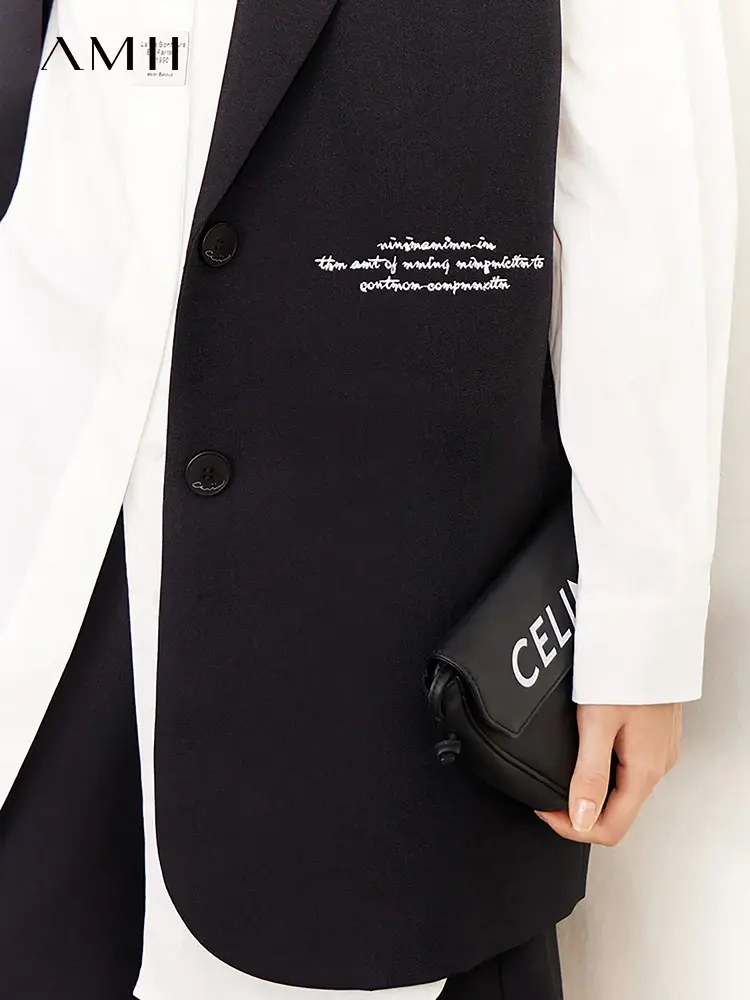 Embroidered Slit Jacket - Minimalist Fall Fashion Tops