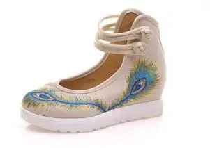 Ethnic Ankle Strap Espadrilles Wedges Floral Embroidered Triangular Heel