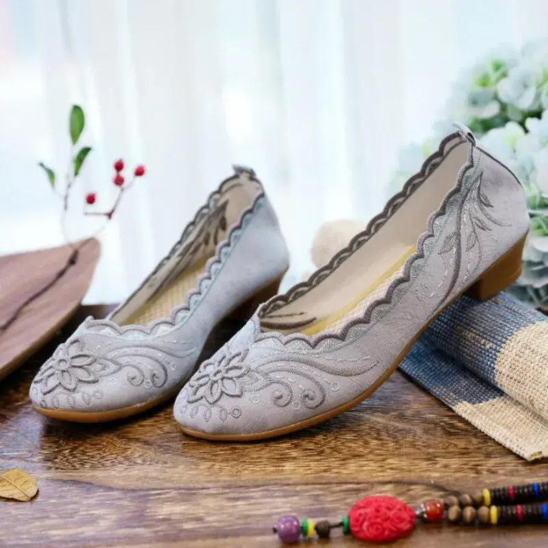 Ethnic Embroidered Pointed Toe Slip-On Dress Pumps - Cotton Upper