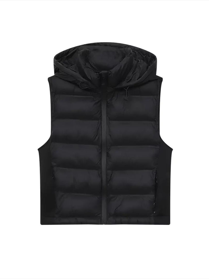Hooded Quilted Vest, Sleeveless Puffer Jacket, Solid Pattern Outerwear Gilet