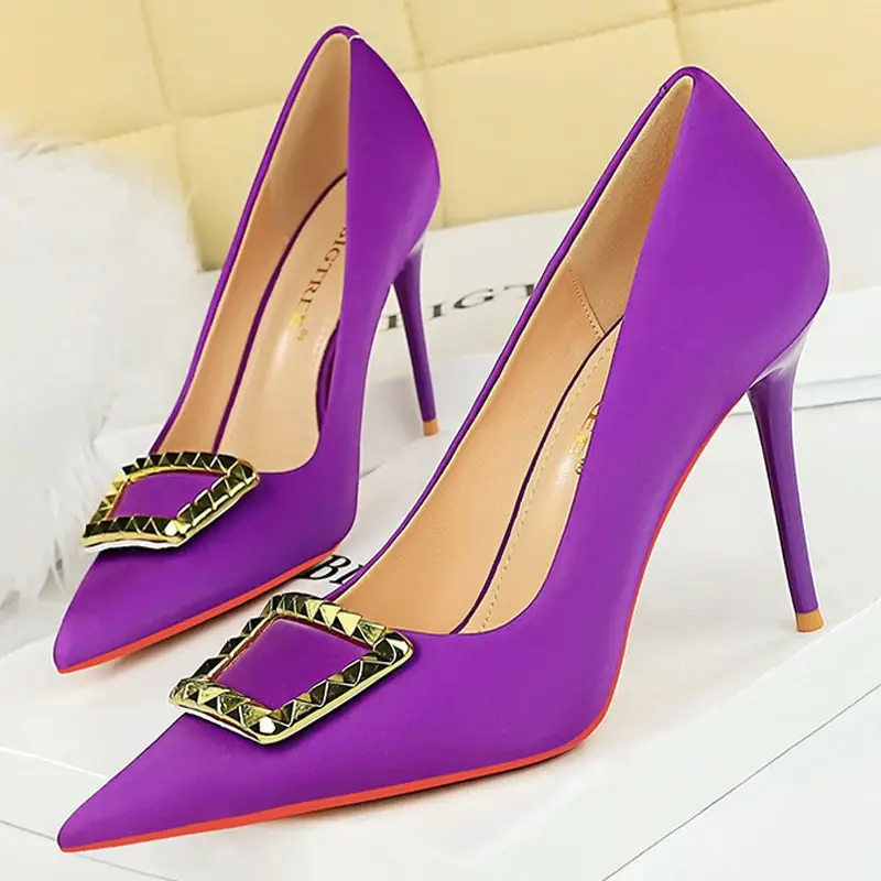 These pointed toe pumps are ready to elevate your look for any summer party. They feature striking super high thin heels and a chic metal decoration, offering an easy slip-on style. Crafted by hand from cotton fabric, they also include a latex insole for a more comfortable fit during your stylish engagements.