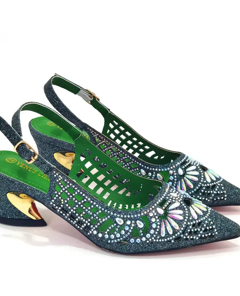 crystal heel slingback pumps and bag set, pointed toe party shoes for women, synthetic flash material shoe and bag combo, spike heel pumps with matching clutch, women's wedding guest shoes and bag, handmade party footwear set, comfortable special occasion shoes, elegant evening bag with chain strap, ladies formal event shoe and purse, spring summer autumn party shoes, crystal embellished heels and bag, stylish slingback pumps for events, women's dress shoes with matching bag, pointed toe heels with crystal detail.