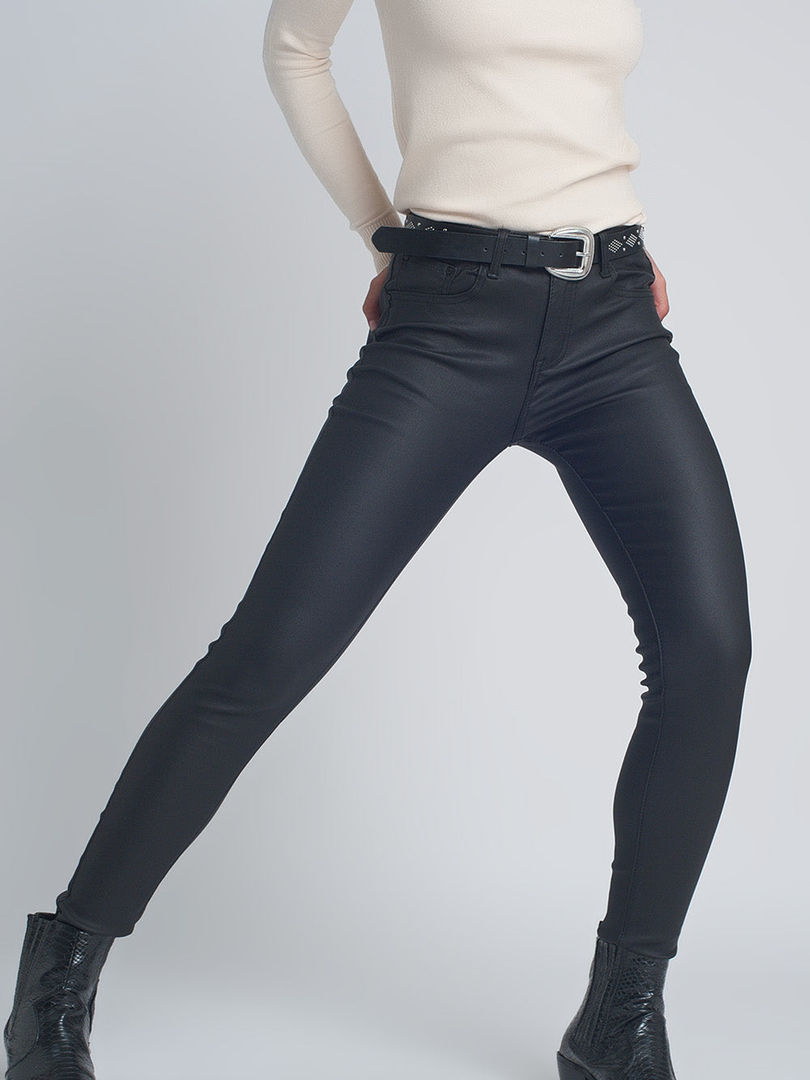 Faux Leather Skinny Trousers Black Bodycon Fit Casual Pants Stretch Fabric Feel
