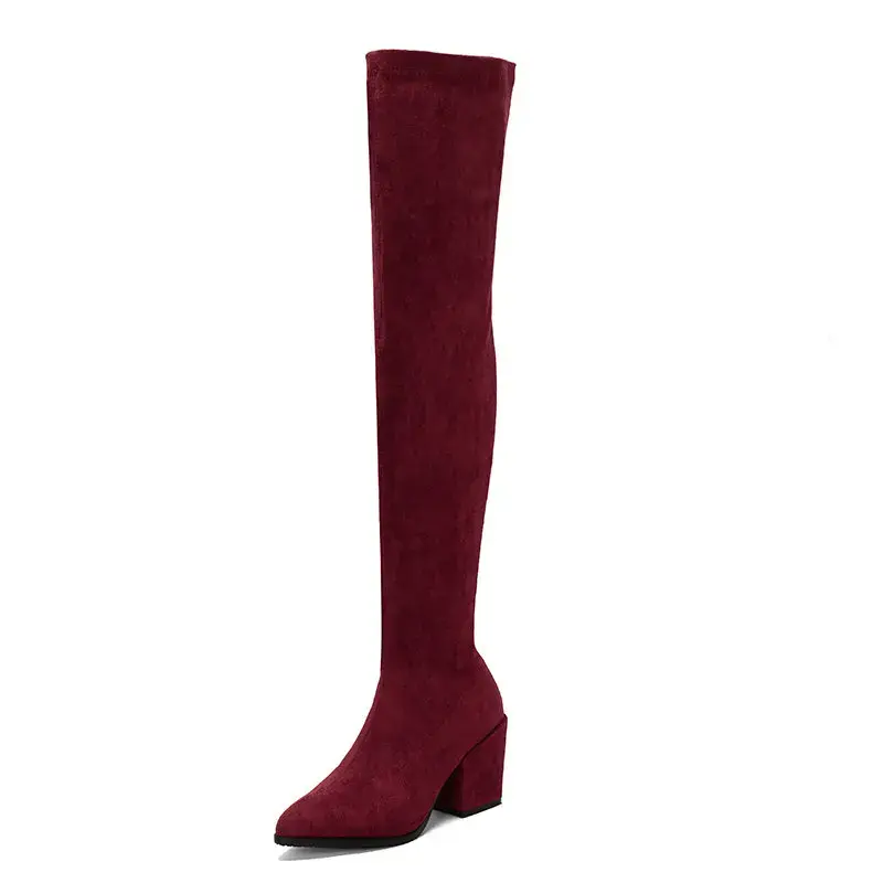 Faux Suede Stretch Over the Knee Pointed Toe Boots