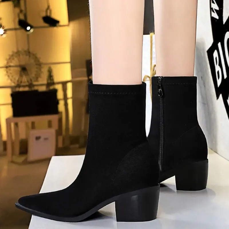 Tags: women's flock ankle boots for spring, autumn pointed toe boots women, comfortable square heel ankle boots, breathable cotton lined boots, zipper ankle boots for easy wear, everyday stylish ankle boots, transitional weather footwear for women, ankle boots for work and casual, versatile ankle boots for dresses, stable mid heel ankle boots, textured upper ankle boots, sophisticated ankle boots for going out, women's ankle boots 5-8 cm heel, durable rubber sole ankle boots.