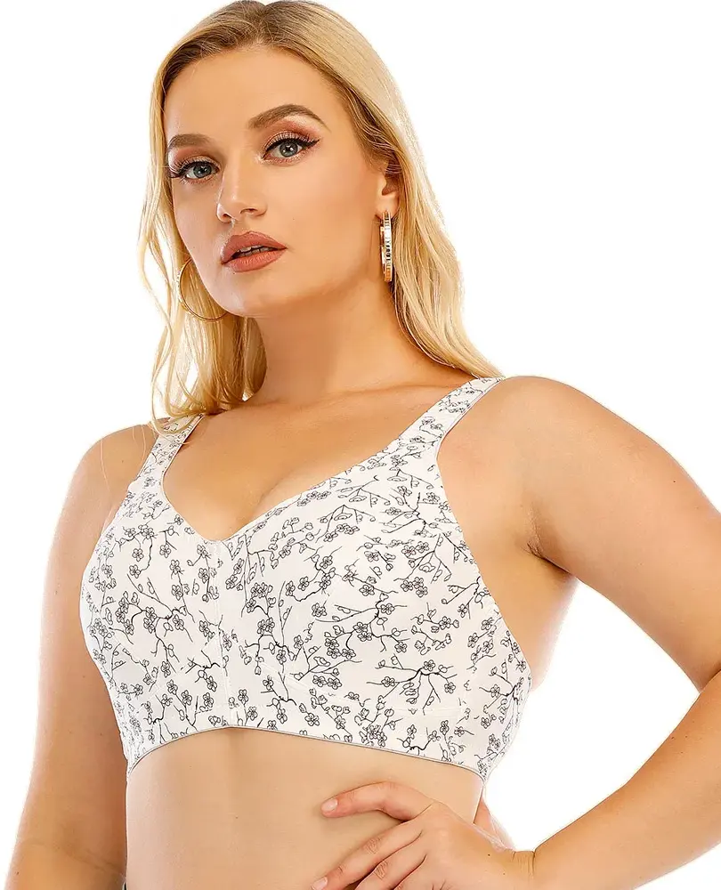 Floral Breathable Wireless Unlined Plus Size Bras Comfort Support