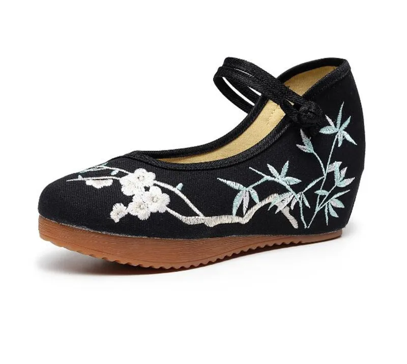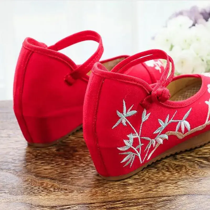 Floral Embroidered Canvas Wedges Mary Jane Pumps - Ethnic Shoes