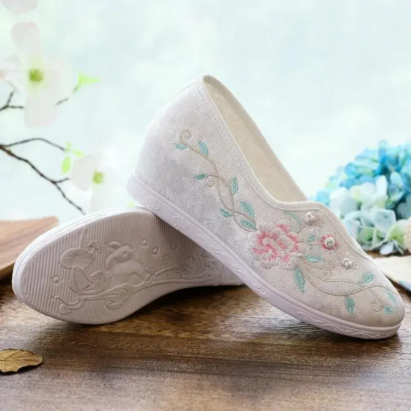Floral Embroidered Slip-On Loafers | Round Toe Ethnic Style Height Increased