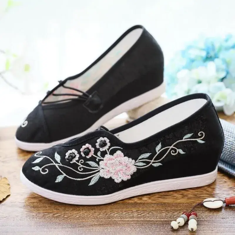 Crafted from high-quality cotton fabric, these pumps feature a durable PVC outsole, breathable cotton fabric lining, and a comfortable hemp insole for long-lasting wear.
