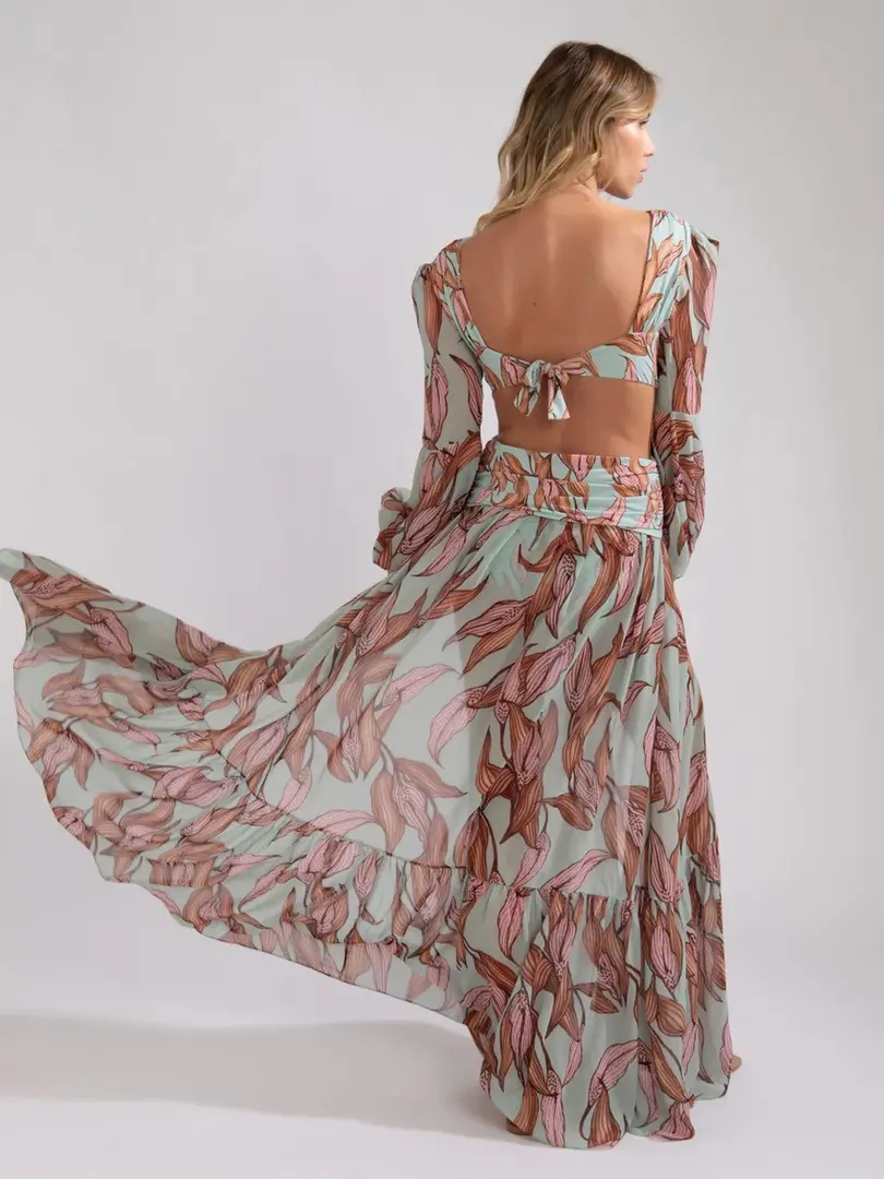 This chic and comfortable long dress effortlessly blends bohemian vibes with a touch of modern flair. The flowing silhouette drapes beautifully, making it a perfect choice for warm days and balmy nights.